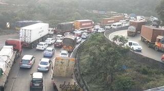 पुण्याकडे जाणाऱ्या मार्गावर बोरघाटात धिम्या गतीने वाहतुक सुरू आहे.