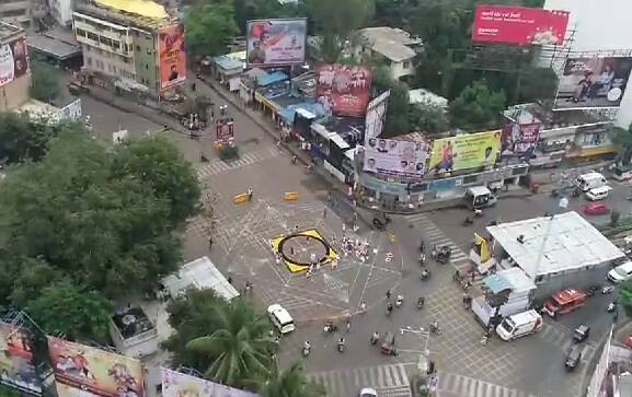 Pune Ganeshotsav 2023 : अलका चौकात भव्य 100 फुटाची रांगोळी रेखाटायला सुरुवात; पाहा ड्रोन फोटो...