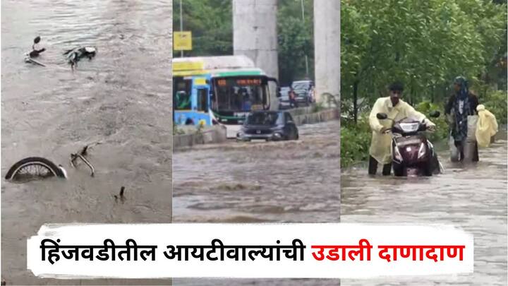 Pune Rain Update : धुव्वाधार पावसाने हिंजवडीतील आयटीवाल्यांची उडाली दाणादाण; 10 मिनिटात रस्ते पाण्याखाली, गाड्या ढकलत नेण्याची वेळ, पाहा PHOTOS