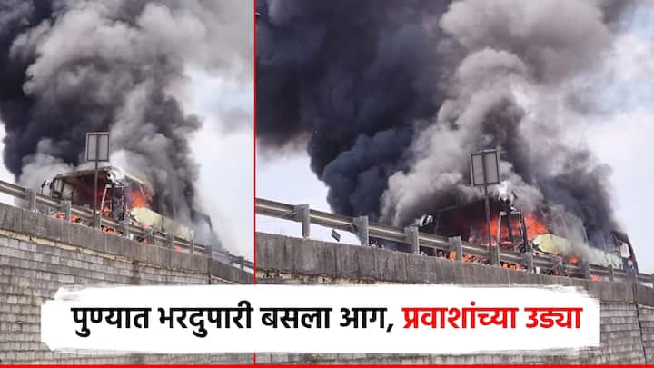 पुण्यात व्हॉल्वो बसला भरदुपारी भीषण आग, जळून खाक; प्रवाशांनी ठोकल्या उड्या