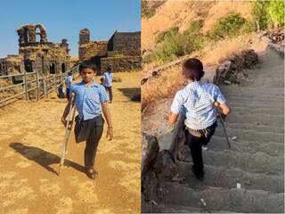 कोणाचीही मदत न घेता केवळ त्याच्या साथीला असणाऱ्या कुबड्यांच्या मदतीने तो जोमाने अन् सर्वांसोबत गड सर करु लागला.