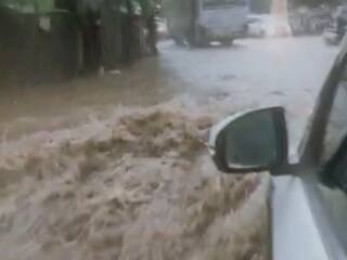 अचानक पाऊस सुरू झाल्याने नागरिकांची तारांबळ उडाली. मुसळधार पावसामुळे रस्त्यांवरून पाण्याचे लोंढे वाहत आहेत. रस्त्यांवर पाणी साठल्याने अनेक ठिकाणी वाहतूककोंडी झाली आहे. रस्त्यांवर पाणी साचल्याने वाहनांना अनेक अडथळ्यांना सामोरे जावे लागतंय.