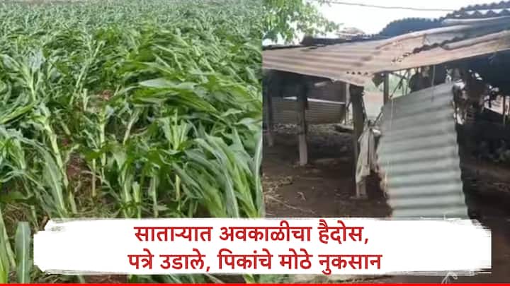 सलग दुसऱ्या दिवशी अवकाळीचा हैदोस, पत्रे उडाले, मक्यासह शाळू पिकालाही फटका, साताऱ्यात काय परिस्थिती? Photos