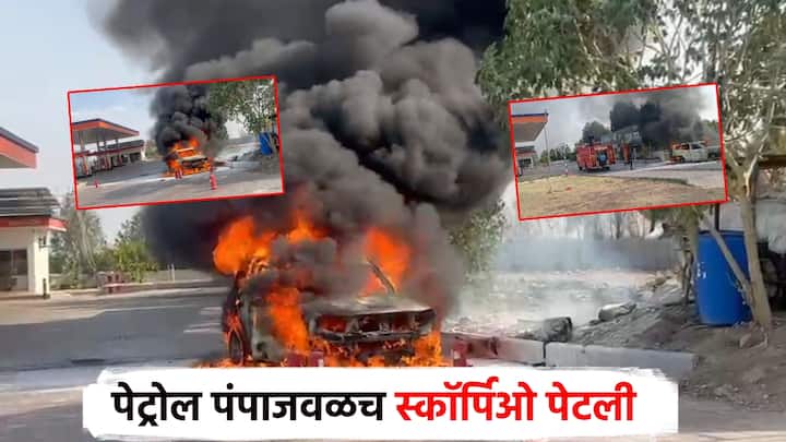 तापमान वाढलेल्या सोलापुरात पेट्रोल पंपावरच 'स्कॉर्पिओ' जळून खाक; सुदैवाने मोठा अनर्थ टळला