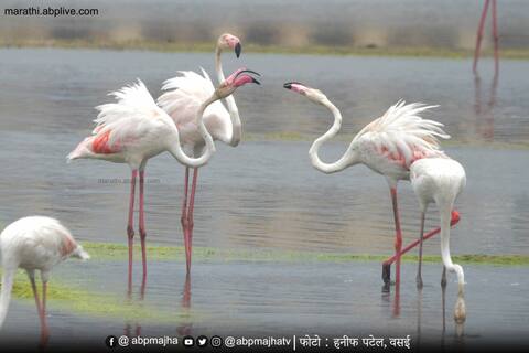 PHOTO | वसईत परदेशी पाहुण्यांचं आगमण, फ्लेमिंगो पक्षांना पाहण्यासाठी पक्षीप्रेमींची गर्दी