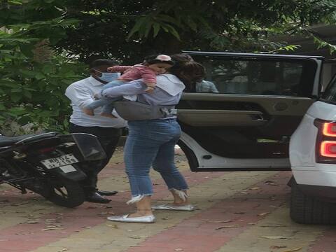 शिल्पा शेट्टी पहिल्यांदाच मुलीसोबत कॅमेऱ्यात कैद झाली आहे.