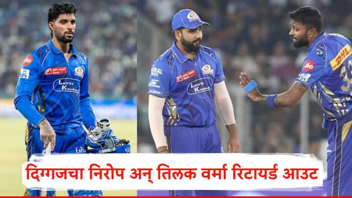 तिलक वर्मा मोठे फटके मारण्यास अपयशी ठरत होता. त्यामुळे 18 व्या षटकातील 5 चेंडू झाल्यानंतर तिलक वर्माला रिटायर्ड आउट करण्याचा निर्णय मुंबईने घेतला. तिलक वर्माला रिटायर्ड आउट करण्याचा हा निर्णय कर्णधार हार्दिक पांड्याने घेतल्याचे बोलले जात होते. मात्र आता खरं सत्य समोर आलं आहे. (Image Credit- IPL 2025)