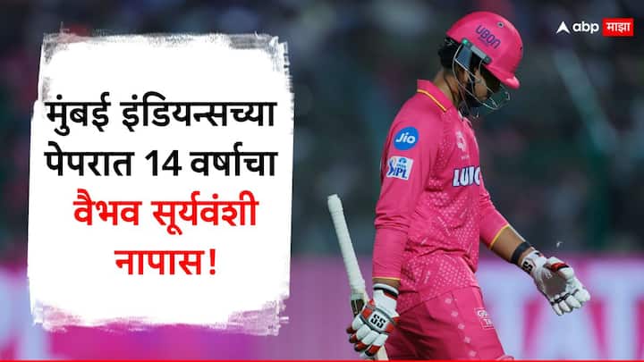Vaibhav Suryavanshi duck RR vs MI : वैभव सूर्यवंशीने गुजरात टायटन्सविरुद्ध फक्त 35 चेंडूत शतक झळकावले होते. पण मुंबई इंडियन्सच्या पेपरात 14 वर्षाचा वैभव सूर्यवंशी नापास झाला.