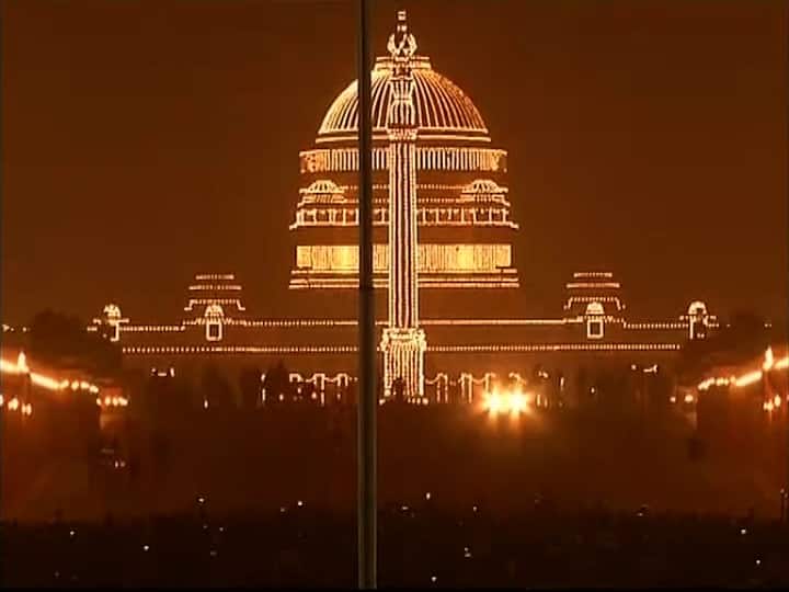 नवी दिल्लीत 'बीटिंग रीट्रिट'वेळी राष्ट्रपती भवनावर आकर्षक रोषणाई