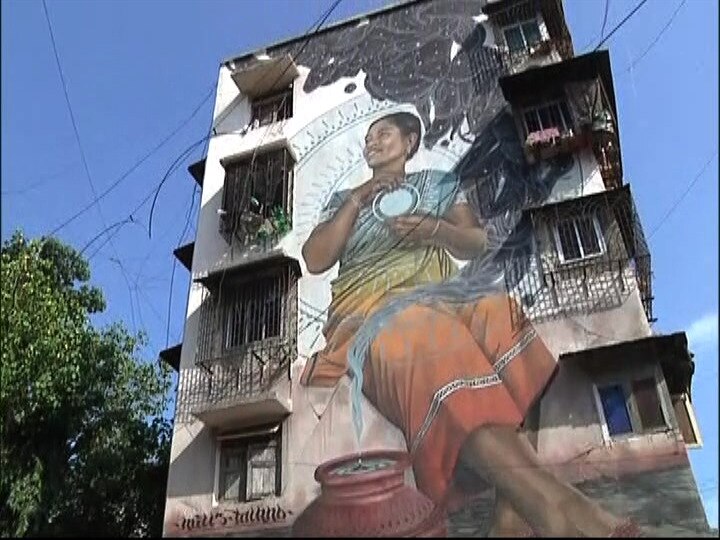 मुंबईच्या धारावीतील इमारतींवर पेटिंगच्या माध्यमातून सर्वसामान्य जीवनाचं चित्रण
