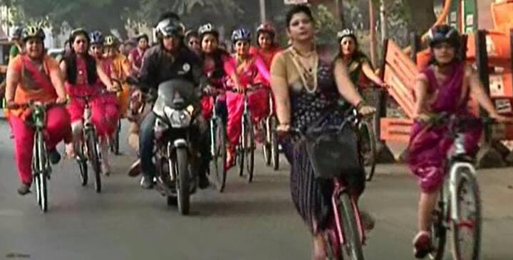 नऊवारी साडीत महिलांची सायकल स्वारी!