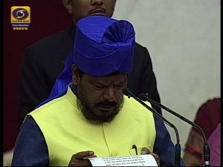 या शपथविधीसाठी आठवलेंनी डोक्यावर निळा फेटा बांधला होता.