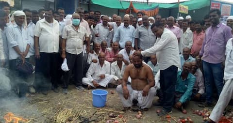 नाशिकमध्ये शेतकऱ्यांचं सामूहिक मुंडन, सरकारची प्रेतयात्रा