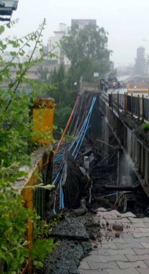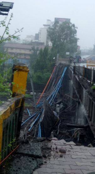अंधेरी स्टेशनवर फुटपाथ कोसळला, वाहतूक ठप्प, दोन जण जखमी