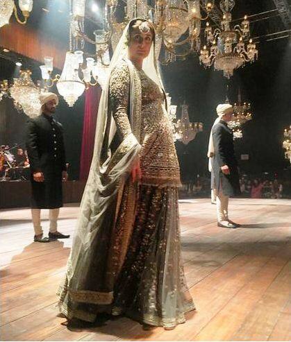 फॅशन डिझायनर सब्यासाचीने डिझाईन केलेला अतिशय भरजरी ऑलिव्ह ग्रीन रंगाचा लेंहगा, कुर्ती पॅटर्न चोळी आणि दुपट्टा यावेळी करीनाने परिधान केला होता. तर मांग टिक्यामुळे तिचं सौंदर्य अधिक खुललं होतं.