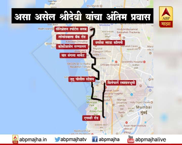 श्रीदेवी यांच्या पार्थिवावर दुपारी साडेतीन वाजता पार्ल्यातल्या स्मशानभूमीत अंत्यसंस्कार होणार आहेत.