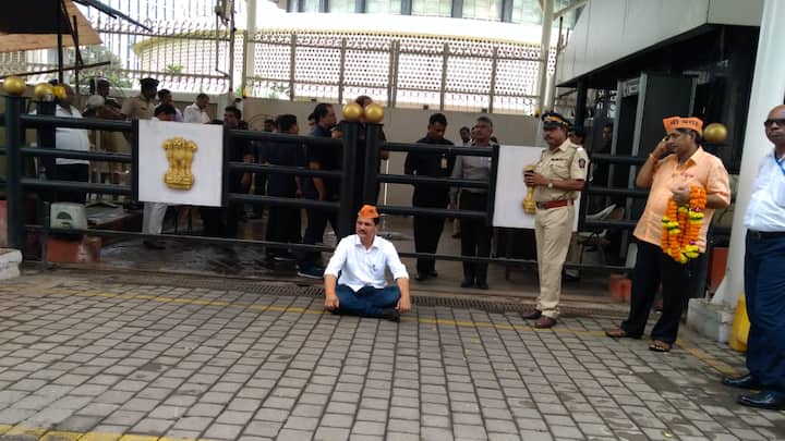 आमदार प्रकाश आबिटकर विधानभवनासमोर मांडी घालून बसले!