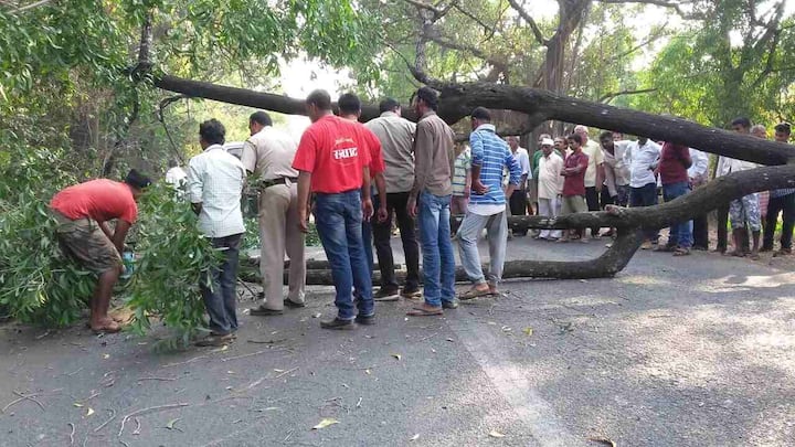 मुंबई-गोवा महामार्गावर अनेक ठिकाणी रस्त्यावर झाडं तोडून वाहतूक रोखण्यात आली होती.