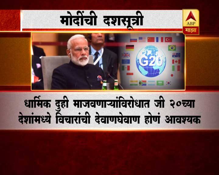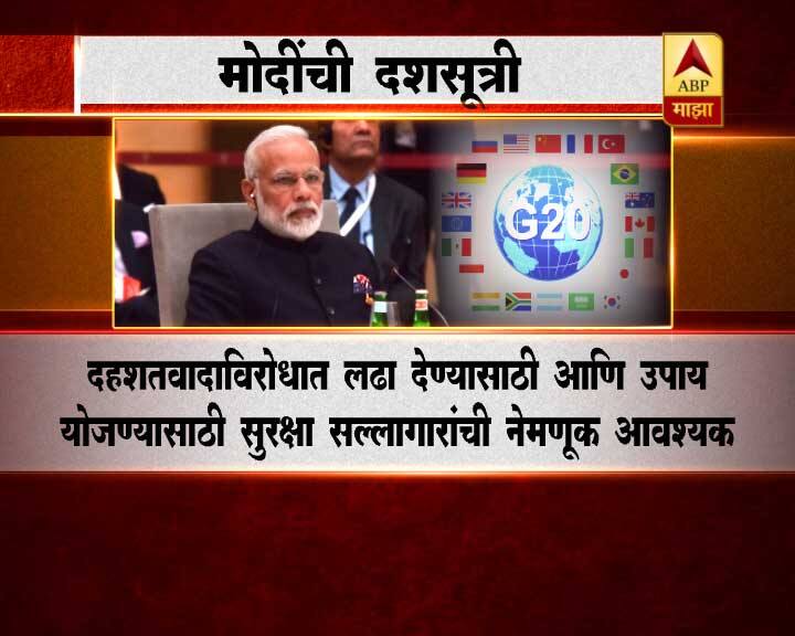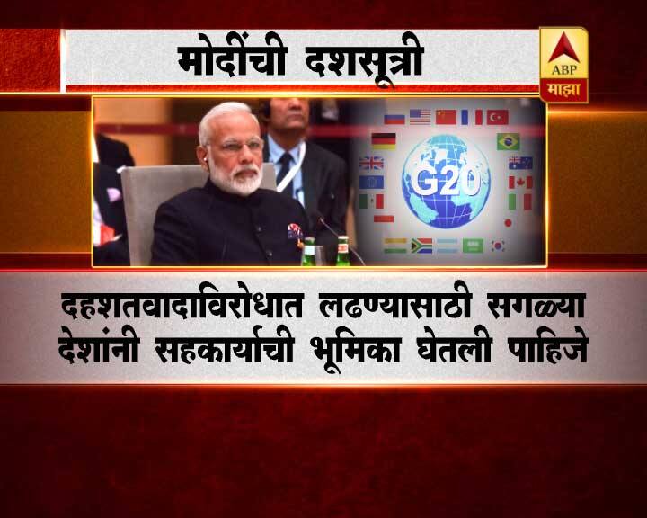 भारताचे पंतप्रधान नरेंद्र मोदी यांनी दहशतवादाविरोधात लढण्यासाठी जी-20 शिखर परिषदेत दशसूत्री मांडली.