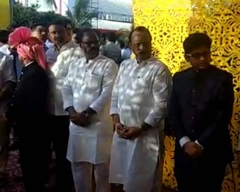 या प्रसंगी पाहुण्यांच्या स्वागताला राष्ट्रवादी काँग्रेसचे नेते अजित पवार स्वतः प्रवेशद्वारावर उभे आहेत.