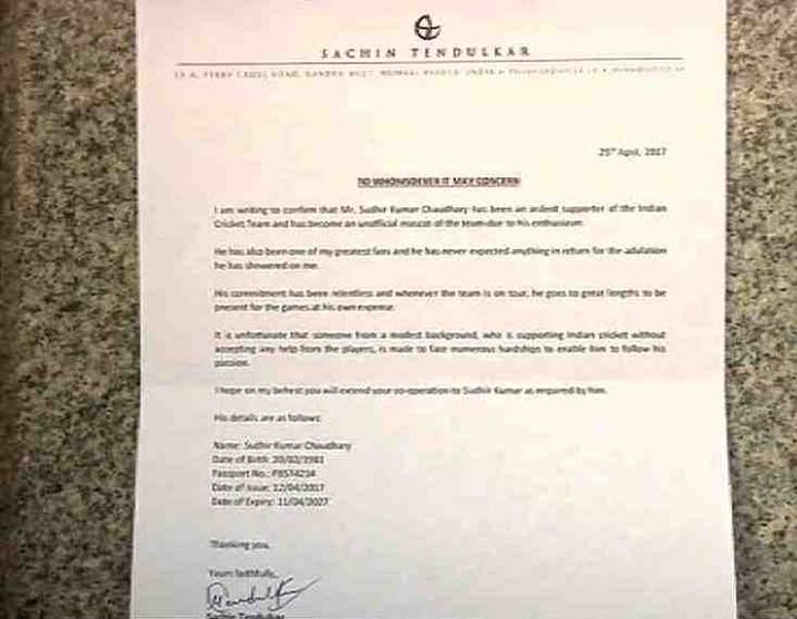 इंग्लंडमधील चॅम्पियन्स ट्रॉफीसाठी संघनिवड जाहीर करण्याची आयसीसीची अंतिम मुदत उलटून गेली तरीही बीसीसीआयनं टीम इंडियाची घोषणा केलेली नाही. तसंच या स्पर्धेसाठी आपल्या खेळाडूंना युनायटेड किंग्डमचा व्हिसा मिळावा म्हणून बीसीसीआयनं अर्जही केलेला नाही. पण चॅम्पियन्स ट्रॉफीसाठी सुधीर चौधरी या टीम इंडियाच्या पाठीराख्याला युकेचा व्हिसा मिळावा म्हणून सचिन तेंडुलकरनं व्हिसा अधिकाऱ्यांना शिफारसपत्र लिहिलं आहे.