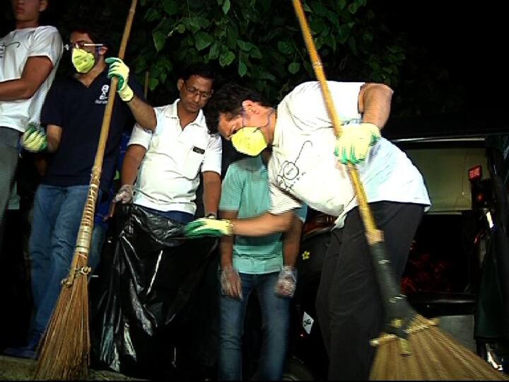 मुलगा अर्जुनसह सचिनने युवासेना अध्यक्ष आदित्य ठाकरे यांच्यासोबत आज पहाटे पाच वाजता हाती झाडू घेऊन स्वच्छता केली.