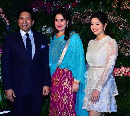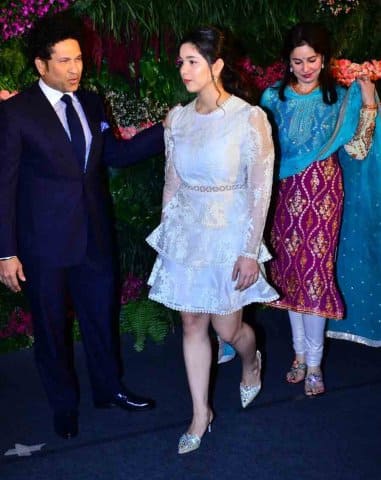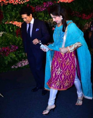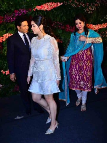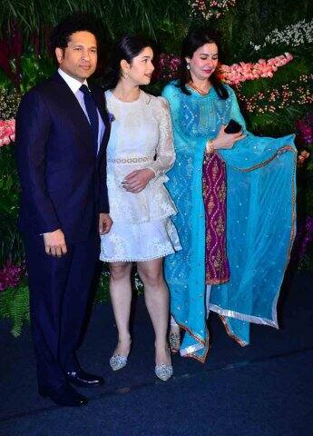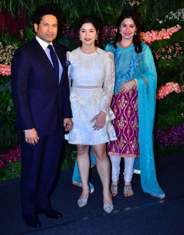 मुंबईत 26 डिसेंबर रोजी विराट कोहली आणि अनुष्का शर्माच्या लग्नाचं दुसरं रिसेप्शन पार पडलं. या पार्टीत बॉलिवूड, उद्योगसह क्रिकेट विश्वातील मान्यवर उपस्थित होते. विरुष्काच्या या रिसेप्शनला सचिन तेंडुलकर मुलगी सारा आणि पत्नी अंजली तेंडुलकरसोबत हजर होता. (Photo: Manav Mangalani)