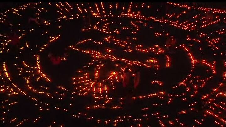 शनिवारवाड्याच्या प्रांगणात मध्यभागी पणतीच्या आकारात दिवे लावण्यात आले.