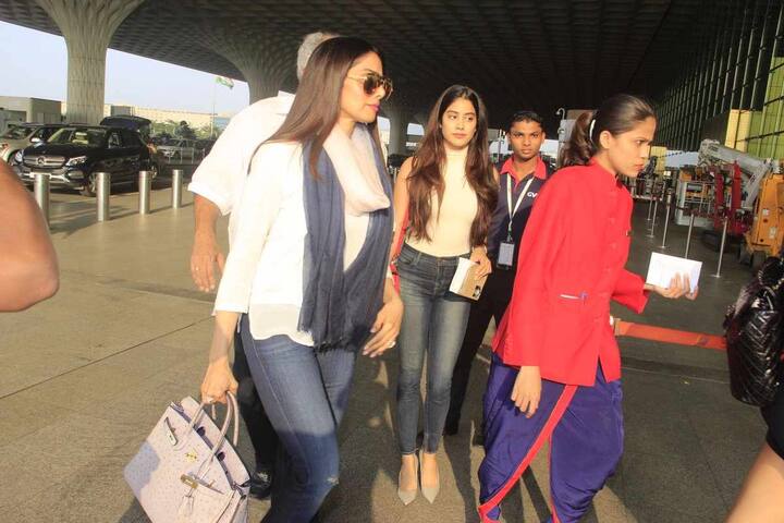 अभिनेत्री श्रीदेवी मुलींसोबत मुंबईत एअरपोर्टवर