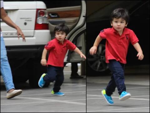 फोटोग्राफर्सना पाहून क्युट पोझमध्ये तैमुर धावत निघाला.