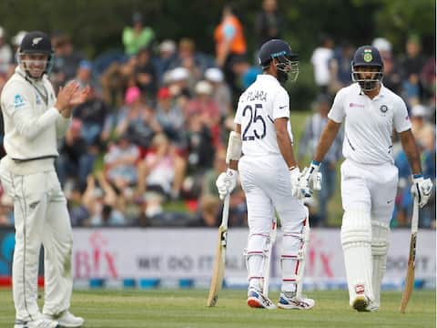 ख्राईस्टचर्च : ख्राईस्टचर्चच्या दुसऱ्या कसोटी सामन्यात न्यूझीलंडनं टीम इंडियाचा पहिला डाव अवघ्या 242 धावांत गुंडाळला. न्यूझीलंडकडून काईल जॅमिसननं 45 धावांत पाच फलंदाजांना माघारी धाडलं. पृथ्वी शॉ, चेतेश्वर पुजारा आणि हनुमा विहारीनं झळकावलेल्या अर्धशतकांनी भारतीय डावाला आकार दिला. त्यानंतर न्यूझीलंडनं सावध सुरुवात करत पहिल्या दिवसअखेर बिनबाद 63 धावांची मजल मारली. वेलिंग्टनपाठोपाठ ख्राईस्टचर्चच्या दुसऱ्या कसोटी सामन्यातही भारतीय फलंदाजांनी न्यूझीलंडच्या वेगवान आक्रमणासमोर लोटांगण घातलं.