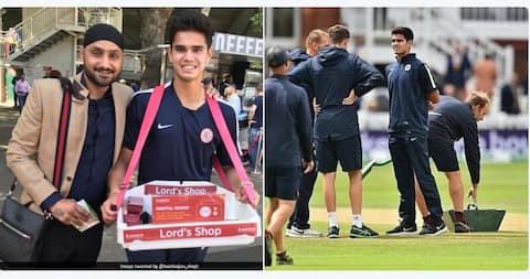 लंडन: मास्टर ब्लास्टर सचिन तेंडुलकरचा लेक अर्जुन पुन्हा एकदा चर्चेत आला आहे. निमित्त क्रिकेटचंच आहे. पण या वेळी स्वत: अर्जुन क्रिकेट खेळत नाही. भारत आणि इंग्लंड संघांमधल्या लॉर्डस कसोटीत पावसाचा वारंवार अडथळा आला. त्यावेळी मैदानातल्या पाण्याचा निचरा करण्यासाठी लॉर्डसच्या ग्राऊंड्समनसोबत अर्जुनही प्रयत्न करताना दिसला. त्याच्या या कामाचं सोशल मीडियावरही कौतुक झालं. पण अर्जुन इतकंच करुन थांबला नाही, त्यानं लॉर्डसच्या बाहेर रेडिओचीही विक्री केली. हरभजनसिंगनं त्याचा रेडिओ विकतानाचा फोटो सोशल मीडियावरून शेअर केला आहे. अर्जुन तेंडुलकर शनिवारी स्टेडियमबाहेर डिजीटल रेडिओ विकत होता. डिजीटल रेडिओ एक इलेक्ट्रॉनिक उपकरण आहे, ज्याद्वारे लाईव्ह कॉमेंट्री प्रसारित केली जाते. त्याद्वारे क्रिकेटप्रेमी ताजे अपडेट जाणून घेऊ शकतात. या रेडिओचे सिग्नल मर्यादित जागेत उपलब्ध असतात. या रेडिओ विक्रीपूर्वी अर्जुन तेंडुलकर शुक्रवारी मैदानातील कर्मचाऱ्यांना मदत करताना दिसला. पहिल्या दिवशी सचिननेही अर्जुनला ग्राऊंडस्टाफला मदत करताना पाहिलं होतं. लॉर्ड्स ग्राऊंडनेही आपल्या ट्विटरवरुन अर्जुनचा फोटो शेअर करत स्तुती केली होती.