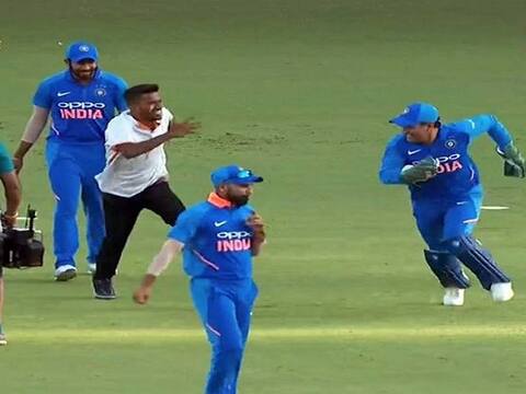 कॅच मी इफ यू कॅन : क्रिकेटच्या पकडापकडीचा खेळ, गळाभेटीसाठी धोनीने चाहत्याला पळवलं!