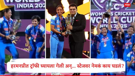IND vs SA Womens World Cup Final 2025 : सध्या संपूर्ण भारतात जल्लोषाचे वातावरण आहे. कारण भारताच्या महिला क्रिकेट संघाने वर्ल्ड कप (India Won Women's World Cup 2025) जिंकला आहे. नवी मुंबईतील डी. वाय. पाटील स्टेडियमवर भारताने दक्षिण आफ्रिकेला पराभूत (India beat South Africa Womens World Cup Final 2025) करत महिला वर्ल्ड कपचे विजेतेपद पटकावले. खचाखच भरलेल्या डी. वाय. पाटील स्टेडियममध्ये भारताने इतिहास रचला. या ट्रॉफीची भारताला अनेक वर्षांपासून प्रतीक्षा होती. मात्र, जेव्हा कर्णधार हरमनप्रीत कौर ट्रॉफी स्वीकारण्यासाठी स्टेजवर गेल्या, तेव्हा घडलेली एक घटना सर्वांच्याच लक्ष्य वेधले.