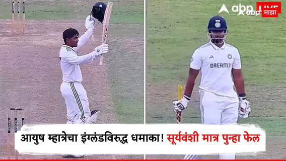 चेन्नई सुपर किंग्सकडून आयपीएल खेळलेला आणि सध्या भारताच्या अंडर-19 संघाचा कर्णधार असलेला आयुष म्हात्रे दुसऱ्या कसोटीत 355 धावांचा पाठलाग करताना मैदानात उतरला. सामन्याच्या शेवटच्या दिवशी त्याने अवघ्या 25 चेंडूत अर्धशतक झळकावलं. अभिज्ञान कुंदूसह त्याने केवळ 77 चेंडूत 117 धावांची भागीदारी केली.