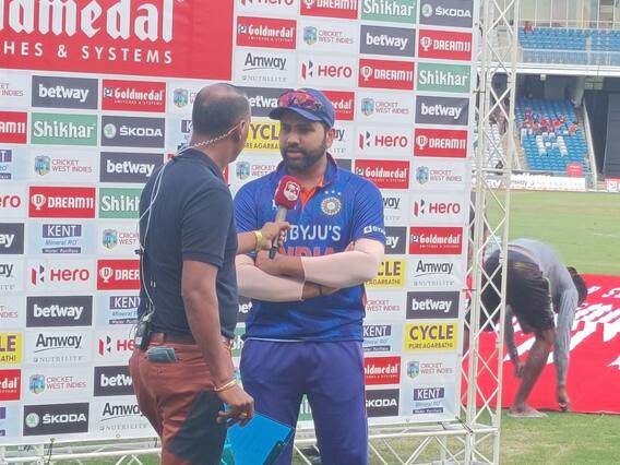 IND vs WI 1st T20: वेस्ट इंडिजविरुद्ध त्रिनिदादच्या (Trinidad) ब्रायन लारा स्टेडियमवर (Brian Lara Stadium) खेळण्यात आलेल्या पहिल्या टी-20 सामन्यात भारतानं (WI vs IND) 68 धावांनी विजय मिळवला. भारतानं प्रथम फलंदाजी करत 20 षटकात 6 विकेट्स गमावून वेस्ट इंडीजसमोर 191 धावांचं लक्ष्य ठेवलं. प्रत्युत्तरात वेस्ट इंडीजचा संघ 122 धावाचं करू शकला. वेस्ट इंडीजविरुद्ध विजयानंतर भारताचा कर्णधार रोहित शर्मानं (Rohit Sharma) सकारात्मक प्रतिक्रिया देत खेळाडूंच्या प्रदर्शनाचं कौतूक केलं. वेस्ट इंडीजविरुद्ध आखलेली रणनीती यशस्वी ठरली आणि भारतानं हा सामना जिंकला, असंही रोहित शर्मानं म्हटलंय.