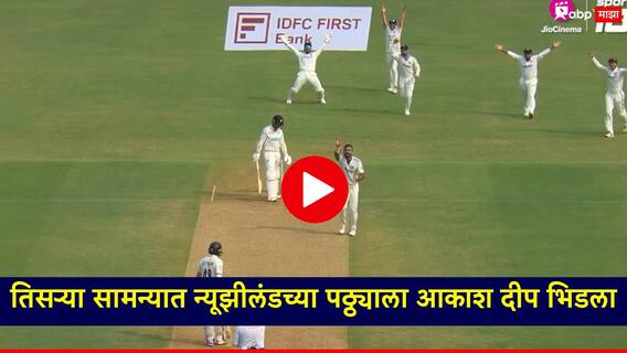 India vs New Zealand: भारत आणि न्यूझीलंड (Ind vs NZ) यांच्यात तिसरा कसोटी सामना सुरु आहे. मुंबईतील वानखेडे मैदानावर हा सामना खेळवण्यात येत आहे. न्यूझीलंडला तिसऱ्याच षटकांत पहिला धक्का बसला. चांगल्या फॉर्मात असलेला डेव्हॉन कॉनवे स्वस्तात बाद झाला. वेगवान गोलंदाज आकाश दीपने कॉनवेला पायचीत बाद केले. सध्या न्यूझीलंडने एक विकेट गमावत 13 षटकांत 51 धावा केल्या आहेत.