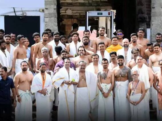 टीम इंडियाला रविवारी श्रीलंकेविरुद्ध वनडे मालिकेतील (India vs Sri Lanka ODI Series) शेवटचा सामना खेळायचा आहे. या सामन्यापूर्वी भारतीय संघाचे स्टार खेळाडू सूर्यकुमार यादव, श्रेयस अय्यर, अक्षर पटेल, कुलदीप यादव, युजवेंद्र चहल हे पद्मनाभस्वामी मंदिरात पोहोचले. या खेळाडूंनी येथे पोहोचून देवाचे आशीर्वाद घेतले. विशेष म्हणजे पूजेदरम्यान सर्व भारतीय खेळाडू पारंपारिक कपड्यांमध्ये दिसले पाहिजेत. या ड्रेसमधील भारतीय खेळाडूंचा फोटो सोशल मीडियावर मोठ्या प्रमाणात व्हायरल होत आहे.