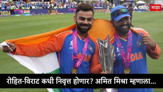 नवी दिल्ली : टीम इंडियाचा फिरकीपटू अमित मिश्रानं (Amit Mishra) एका पॉडकास्टमध्ये रोहित शर्मा (Rohit Sharma) आणि विराट कोहली (Virat Kohli) यांच्या आंतरराष्ट्रीय क्रिकेटमधील निवृत्तीवर भाष्य केलं आहे. रोहित शर्मा आणि विराट कोहलीनं यापूर्वीच टी 20 क्रिकेटमधून निवृत्ती जाहीर केली होती. भारतानं टी 20 वर्ल्ड कप जिंकल्यानंतर विराट कोहली आणि रोहित शर्मानं निवृत्ती जाहीर केली होती. टी 20 क्रिकेटमध्ये विराट कोहली आणि रोहित शर्माची जागा कोण घेणार या बाबतच्या चर्चा सुरु असताना अमित शर्माला शुभंकर मिश्राच्या पॉडकास्टमध्ये विराट कोहली आणि रोहित शर्माच्या निवृत्तीबाबत प्रश्न विचारण्यात आला होता. अमित मिश्रानं एका वाक्यात या प्रश्नाचं उत्तर दिलं.