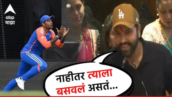 Team India Players Felicitation in Vidhan Bhavan : तब्बल 17 वर्षानंतर टीम इंडियाने टी20 विश्वचषकावर नाव कोरले. त्यामुळे देशभरात उत्साहाचे वातावरण आहे. टीम इंडियाचे देशभरातून कौतुकाचे वर्षाव होत आहे. या विजयात महाराष्ट्रातीलही खेळाडूंचा मोठा वाटा आहे. कर्णधार रोहित शर्मा, सूर्यकुमार यादव, शिवम दुबे आणि यशस्वी जैयस्वाल टीम इंडियाचे सदस्य होते. या सर्वांचा सत्कार समारंभ आयोजित करण्यात आला होता. यावेळी बोलताना रोहित शर्माने आपल्या खास शब्दात भाषण केले. रोहित शर्माने सूर्यकुमार यादवच्या झेलवरुन केलेल्या वक्तव्याने सभागृहात हशा पिकला. बरं झालं, सूर्याच्या हातात कॅच बसला, नाहीतर त्याला घरी बसवलं असतं, असं मस्करीत रोहित शर्मा म्हणाला.