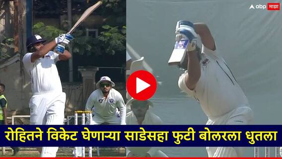 Rohit Sharma Ranji Trophy: भारतीय कर्णधार रोहित शर्मा (Rohit Sharma) मुंबईकडून रणजी ट्रॉफी सामना खेळत आहे. काही काळापासून आंतरराष्ट्रीय कसोटी क्रिकेटमध्ये अपयशी ठरलेल्या रोहित शर्मा रणजी क्रिकेटकडे (Rohit Sharma Ranji Trophy Mumbai Match) पुन्हा वळला. सध्या मुंबई आणि जम्मू-काश्मीरच्या संघांमध्ये मुंबईतील बीकेसी मैदानात रणजी सामना सुरु आहे. मात्र 10 वर्षांनी रणजी क्रिकेटमध्ये उतरलेल्या रोहित शर्माला पहिल्या डावात मोठी धावसंख्या करता आली नाही. रोहित शर्मा अवघ्या 3 धावांवर बाद झाला. जम्मू-काश्मीरच्या साडेसहा फुटी उमर नझीरने रोहित शर्माला झेलबाद केला. मात्र दुसऱ्या डावात रोहित शर्मा फॉर्ममध्ये परतला आहे. पहिल्या डावात बाद करणाऱ्या उमर नझीरला धू धू धुतला. उमर नझीरच्या एका षटकात रोहित शर्माने एक षटकारसह दोन चौकार झळकावले.