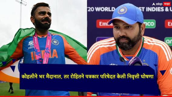 Rohit Sharma-Virat Kohli: भारतीय संघाने तब्बल 17 वर्षांनंतर टी-20 विश्वचषक जिंकला. या विजयानंतर भारतीय कर्णधार रोहित शर्मा (Rohit Sharma) आणि विराट कोहलीने (Virat Kohli) आतंरराष्ट्रीय टी-20 फॉरमॅटमधून निवृत्ती जाहीर केली. सध्या रोहित शर्माच्या नावावर टी-20 फॉरमॅटमध्ये सर्वाधिक धावा, सर्वाधिक षटकार आणि सर्वाधिक शतकांचा विक्रम आहे. मात्र, क्रिकेट चाहत्यांच्या मनात हा प्रश्न पडतोय की, रोहित शर्माने मैदानावरच निवृत्ती का जाहीर केली नाही?, आता यामागचं महत्वाचं कारण समोर आलं आहे.