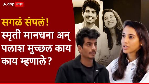 Smriti Mandhanna And Palash Muchhal Wedding Called Off: भारतीय महिला क्रिकेट संघाची उपकर्णधार स्मृती मानधना (Smriti Mandhanna) आणि संगीतकार पलाश मुच्छल (Palash Muchhal) यांचे लग्न मोडलं आहे. स्मृती मानधना आणि पलाश मुच्छल यांनी सोशल मीडियावर पोस्ट करत लग्न मोडल्याचे (Smriti Mandhanna And Palash Muchhal Wedding Called Off) अधिकृतपणे जाहीर केले आहे. पहिला स्मृती मानधनाने सोशल मीडियावर लग्नाबाबत पोस्ट केली. त्यानंतर पलाश मुच्छलही पोस्ट करत मानतलं सगळं बोलला. (Smriti Mandhanna And Palash Muchhal Marathi News)
