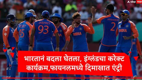गयाना : टी ट्वेण्टी वर्ल्ड कप 2024 ची (T20 World Cup 2024) दुसरी सेमी फायनल भारत (India) आणि इंग्लंड (England) यांच्यात पार पडली. भारतानं रोहित शर्मा, (Rohit Sharma) सूर्यकुमार यादव, हार्दिक पांड्या यांच्या दमदार फलंदाजीच्या जोरावर 7 विकेटवर 171 धावा केल्या. यानंतर अक्षर पटेल, (Axar Patel) कुलदीप यादव, (Kuldeep Yadav) जसप्रीत बुमराहच्या भेदक गोलंदाजीच्या जोरावर भारतानं इंग्लंडला पराभूत केलं. भारतानं दिमाखात अंतिम फेरीत प्रवेश केला असून दक्षिण आफ्रिकेविरुद्ध त्यांची लढत होईल. भारतानं इंग्लंडला 103 धावांवर बाद करत 68 धावांनी विजय मिळवला. अखेर भारतानं 2022 च्या टी 20 वर्ल्ड कपमध्ये उपांत्य फेरीत झालेल्या पराभवाचा बदला घेतला.