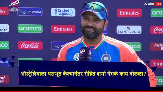 ऑस्ट्रेलियाविरुद्ध सामना जिंकल्यानंतर रोहित शर्मा म्हणाला, Satisfying...(समाधानकारक), रोहितचा हा शब्द ऐकून त्याने भारतीयांच्या मनातील गोष्ट बोलल्याचे सांगितले जात आहे. रोहित पुढे म्हणाला की, आम्ही प्रतिस्पर्ध्यांकडून काय धोका उद्भवला जाऊ शकतो, हे जाणतो. एक संघ म्हणून आम्ही चांगले केले, आम्हाला आवश्यक असलेल्या गोष्टी करत राहिलो. एक संघ म्हणून आम्हाला चांगला आत्मविश्वास देतो. 200 ही चांगली धावसंख्या आहे. पण जेव्हा तुम्ही इथे खेळत असाल तेव्हा वारा हा एक मोठा घटक आहे. मात्र आम्ही चांगले खेळलो, असं रोहित शर्माने सांगितले.