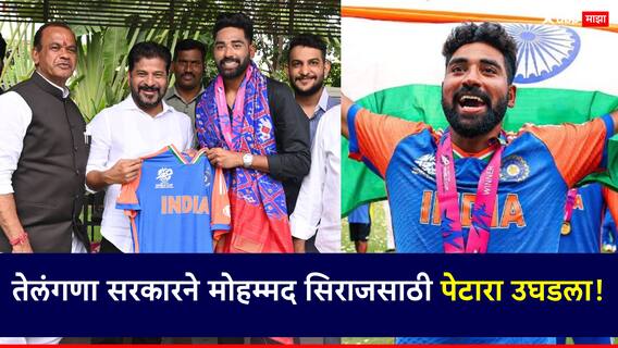 तेलंगणाचे मुख्यमंत्री रेवंत रेड्डी यांनी मोहम्मद सिराजची भेट घेऊन त्यांच्या विजयाबद्दल अभिनंदन केले. यासोबतच मोहम्मद सिराजला सरकारी नोकरीचीही घोषणा करण्यात आली. हैदराबादमध्ये घर बांधण्यासाठी मोहम्मद सिराजला जमीन देण्याची घोषणाही करण्यात आली आहे. यावेळी मोहम्मद सिराजने रेवंत रेड्डी यांना टीम इंडियाची जर्सी भेट दिली. मोहम्मद सिराज आणि रेवंत रेड्डी यांच्या भेटीत भारताचा माजी क्रिकेटपटू मोहम्मद अझरुद्दीनही उपस्थित होता. तेलंगणाच्या सीएमओने या बैठकीची छायाचित्रे आणि व्हिडीओ शेअर केला आहे.