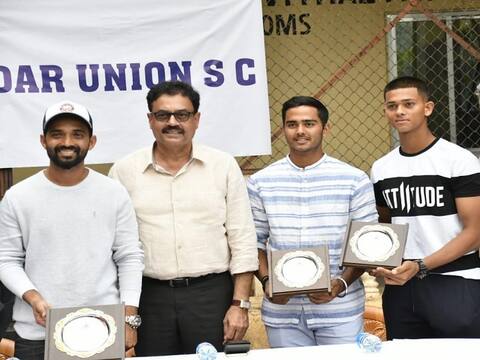 भारताच्या अंडर नाईन्टिन विश्वचषक संघात निवड झालेल्या मुंबईच्या यशस्वी जैस्वाल आणि दिव्यांश सक्सेना यांचा दादर युनियन स्पोर्टिंग क्लबच्या वतीने काल संध्याकाळी (05 डिसेंबर) सत्कार करण्यात आला. भारताचा कसोटी उपकर्णधार अजिंक्य रहाणेच्या हस्ते सन्मानचिन्ह देऊन त्यांचा गौरव करण्यात आला.