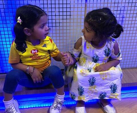 हरभजनची मुलगी हिनाया आणि सुरेश रैनाची मुलगी ग्रेशिया एकमेकींशी गप्पा मारत असतानाचा फोटो सोशल मीडियावर व्हायरल झाला आहे.