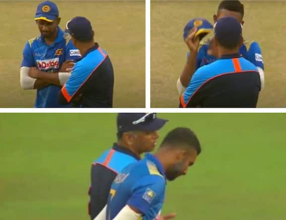 नेमकं काय घडलंतिसऱ्या वनडेत टीम इंडिया प्रथम फलंदाजी करत असताना 23 व्या षटकानंतर पावसाचे आगमन झाल्याने खेळ तासाभरासाठी थांबवला. त्यावेळी भारताची धावसंख्या तीन बाद 147 झाली होती. पाऊस थांबल्यानंतर मैदानाचे निरीक्षण करण्यासाठी राहुल द्रविड मैदानात उतरला. त्याचवेळी श्रीलंकेचा कर्णधार दसून शनाका देखील मैदानात आला. द्रविडला पाहताच शनाका त्याच्याशी चर्चा करू लागला. द्रविडने देखील प्रतिस्पर्धी न मानता त्याला काही मार्गदर्शन केले. शनाका द्रविडच्या या सूचना अत्यंत नम्रपणे ऐकत असल्याचं या फोटोत दिसत आहे.