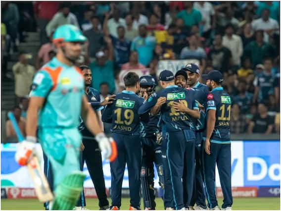 IPL 2022, GT vs LSG: शुभमन गिलच्या संयमी अर्धशतकानंतर राशिद खान याने केलेल्या भेदक माऱ्याच्या जोरावर गुजरातने लखनौचा 62 धावांनी पराभव केला. माफक 144 धावांचा बचाव करताना गुजरातच्या गोलंदाजांनी अचूक टप्यावर मारा केला. लखनौचा संपूर्ण संघ 82 धावांत संपुष्टात आला. यंदाच्या हंगामातील गुजरातचा हा नववा विजय होता. लखनौचा पराभव करत गुजरातने पुन्हा एकदा गुणतालिकेत अव्वल स्थानावर कब्जा केलाय. तसेच या विजयासह गुजरातच्या संघाने प्लेऑफमध्ये प्रवेश केलाय. यंदाच्या हंगामात प्लेऑफमध्ये पोहचणारा गुजरात पहिला संघ आहे.
